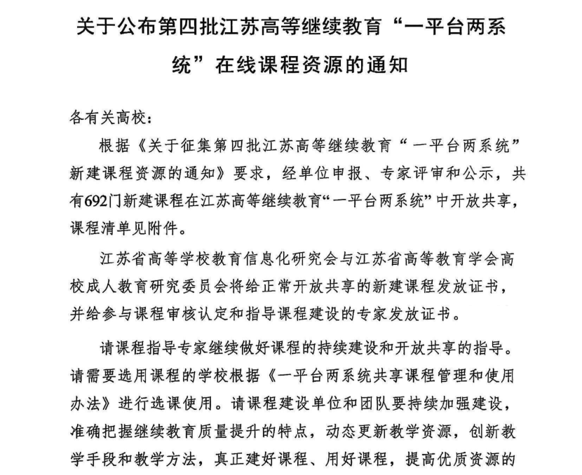 集团20门课程资源获批第四批江苏高等继续教育“一平台两系统”在线课程资源认定