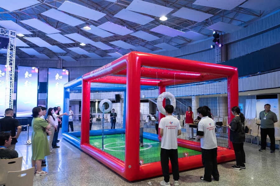 在技能展示环节,学员们通过模拟道路中断场景,完整演示了无人机编队快速勘测障碍与精准投送物资的应急抢通流程。随后的无人机足球表演赛中,红蓝两队展开激烈角逐,攻防转换间展现出精湛的操控技术和团队默契,龚志铭教授与李玮副教授现场进行了专业点评。
